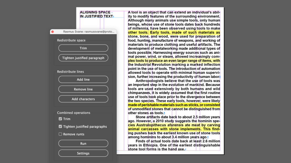 A script for Adobe InDesign that trims and tightens text paragraphs to help designers create a uniform typographic look.